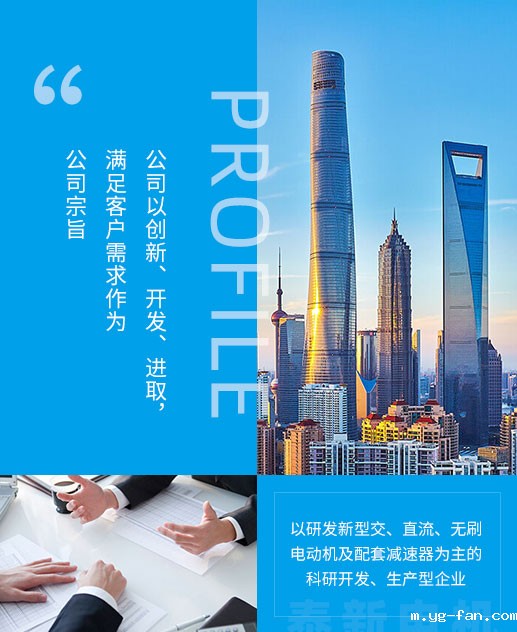 公司以创新、开发、进取,满足客户需求作为公司宗旨、自公司成立以来,已设计开发出XC系列、TX系列、YTPS系列印刷机专用变频减速电动机及YLJ系列数控机床专用刀架力矩三相异步电动机。同时公司传承生产精密行星减速器、YTPS系列变频调速三相异歩电动机、Y2系列三相异步电动机、直流伺服电动机、直流永磁电动机、稀士永磁电动机及各类交、直流减速电动机。产品质量稳定可靠,销往各省、市、自治区,并随主机产品远销国外,深受用户信任与欢迎。
