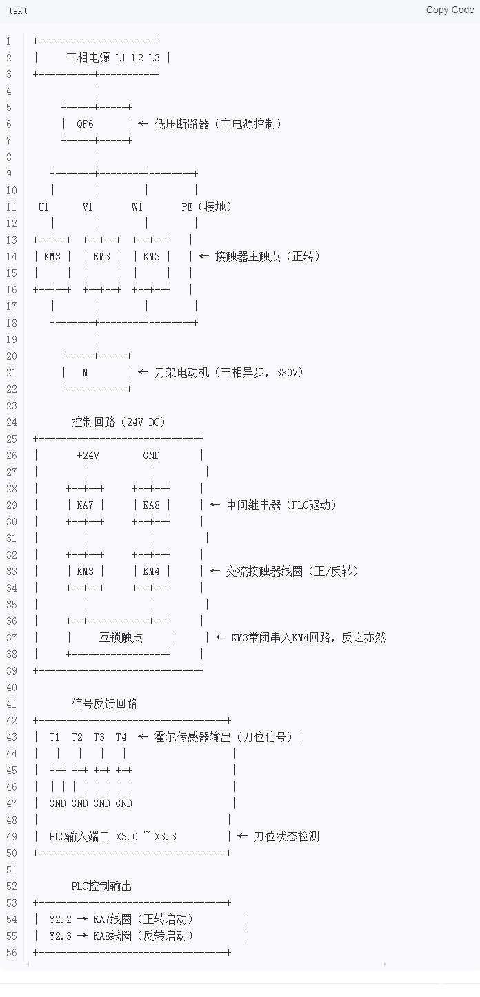 刀架电机标准接线示意图(文字版结构说明)
